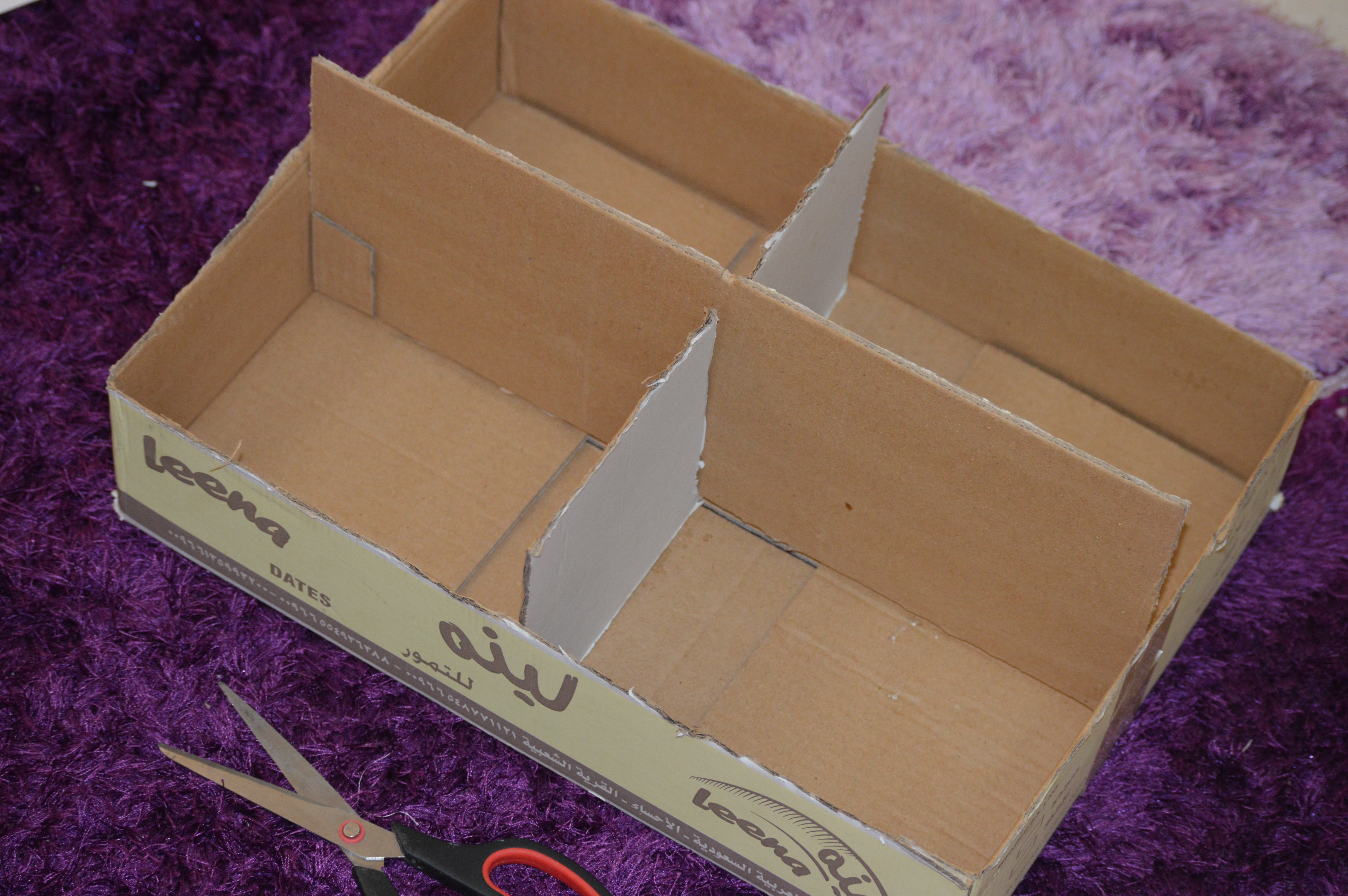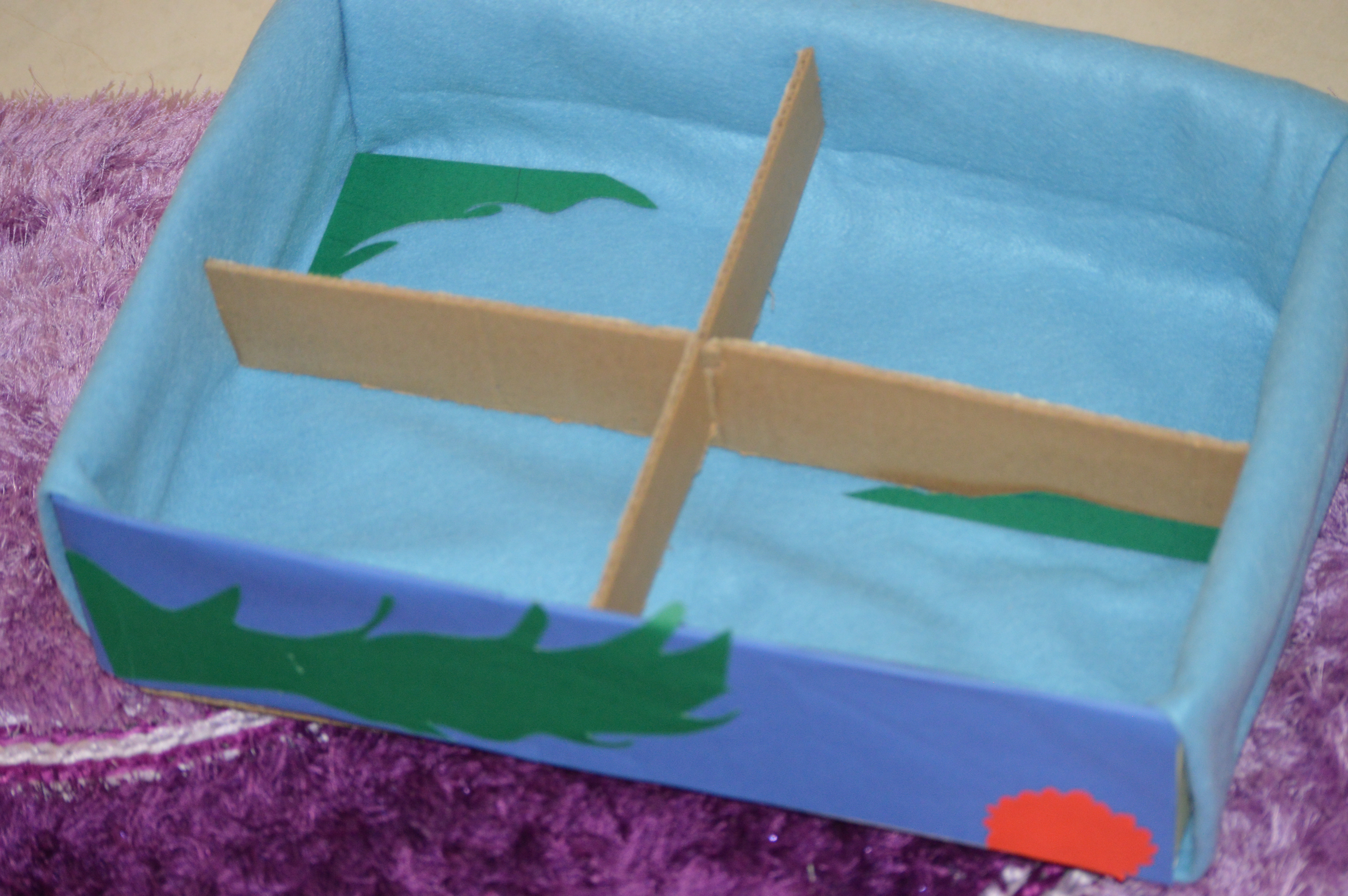 Bring your cardboard box, separate it into sections, I choose four to reflect 4 scenes of the story.